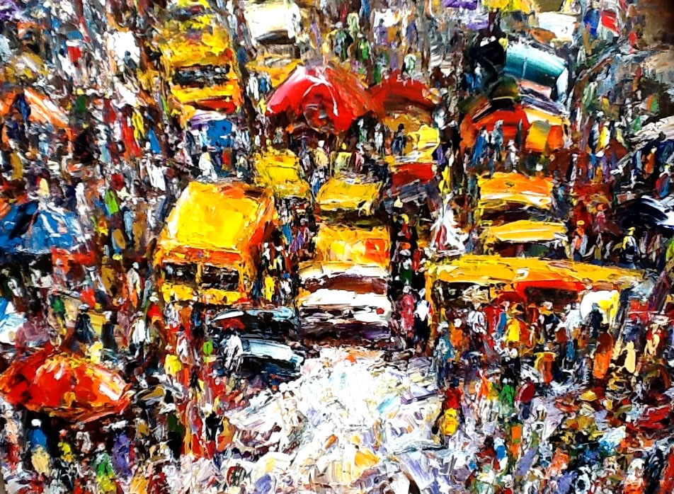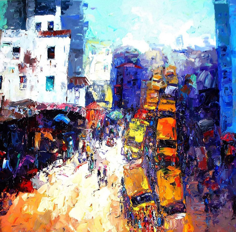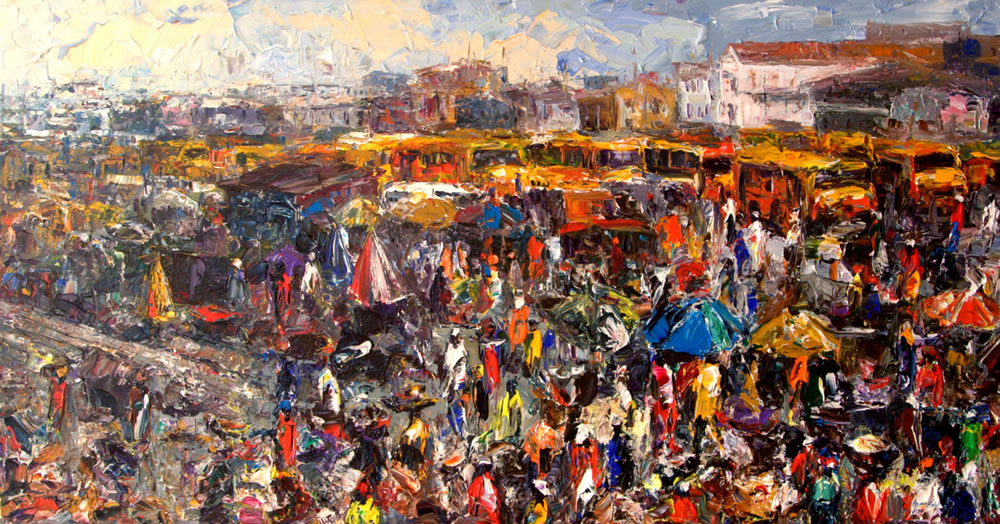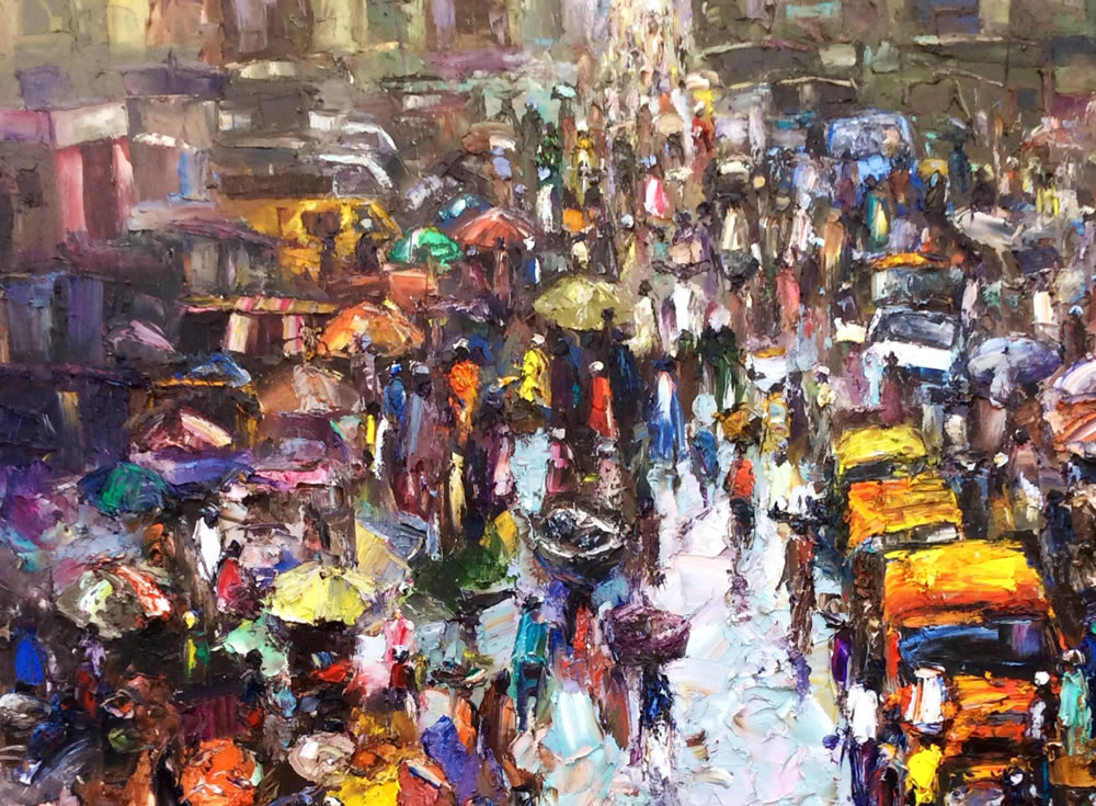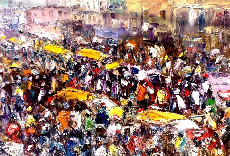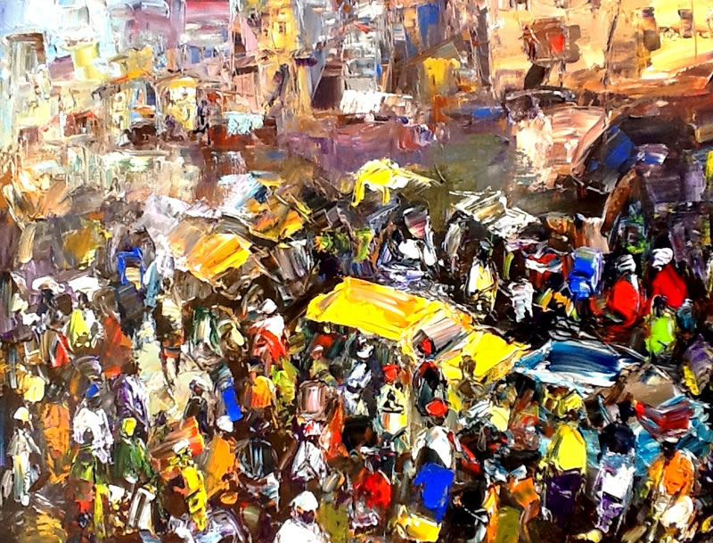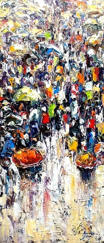 This is a captivating collection of paintings that beautifully capture the essence of urban life, bustling markets, serene seascapes, and everyday activities. Each piece tells a story of the simple yet profound moments of daily life.