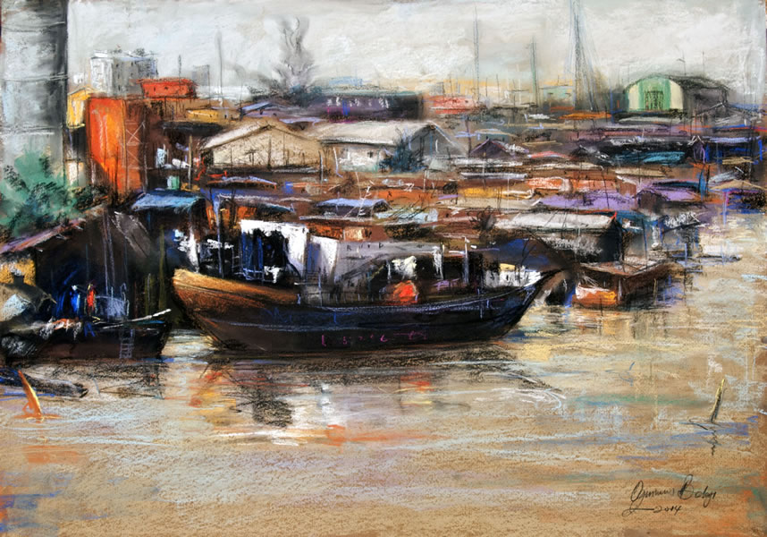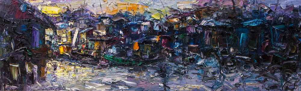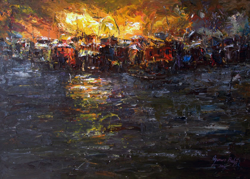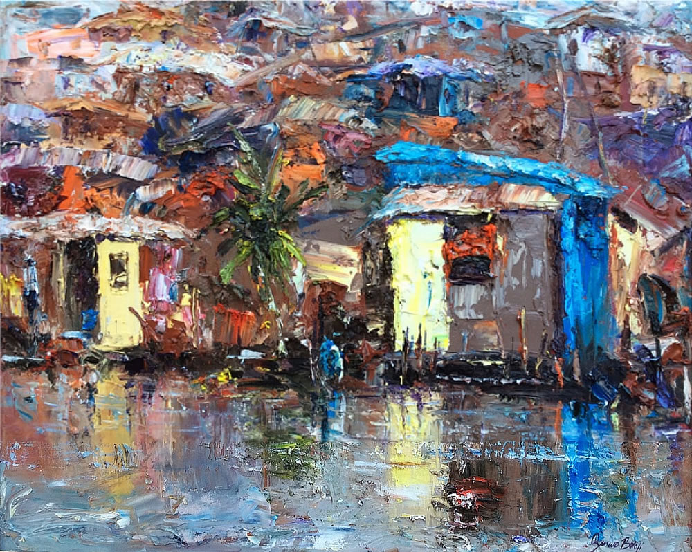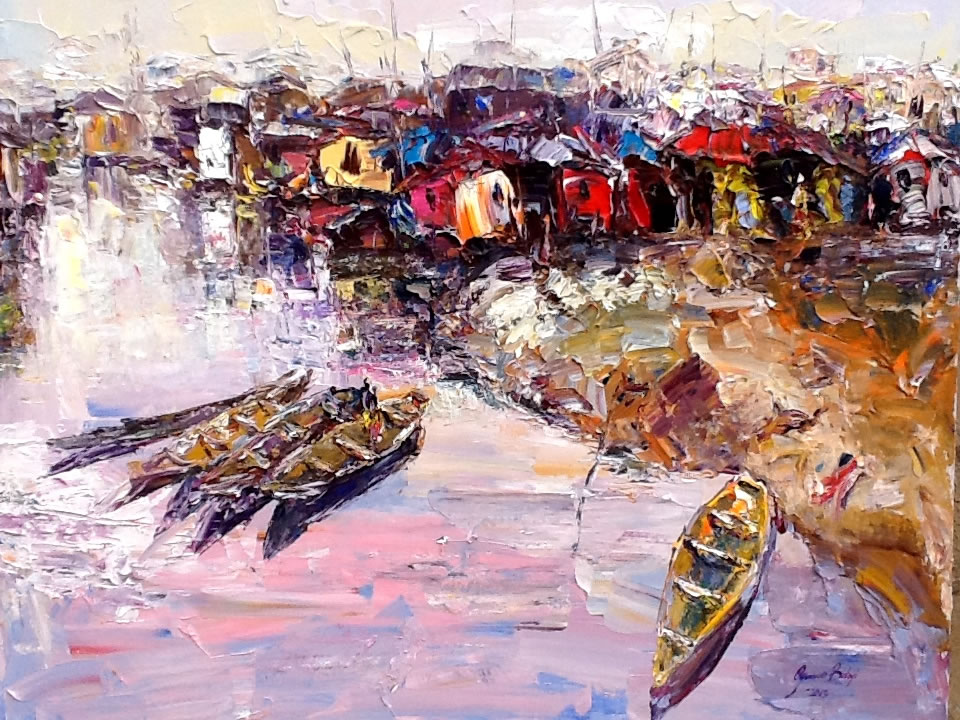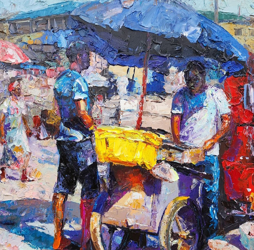 This is a captivating collection of paintings that beautifully capture the essence of urban life, bustling markets, serene seascapes, and everyday activities. Each piece tells a story of the simple yet profound moments of daily life.